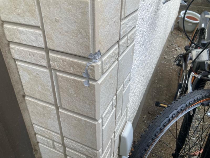 外壁の出角が欠けていました。サイディングの出角は劣化しやすい箇所となっています。塗装前に補修を行います。