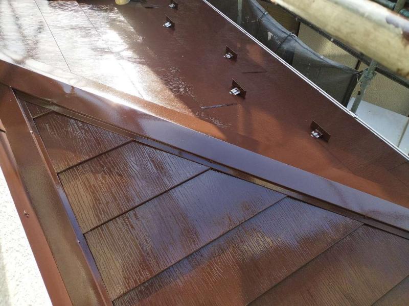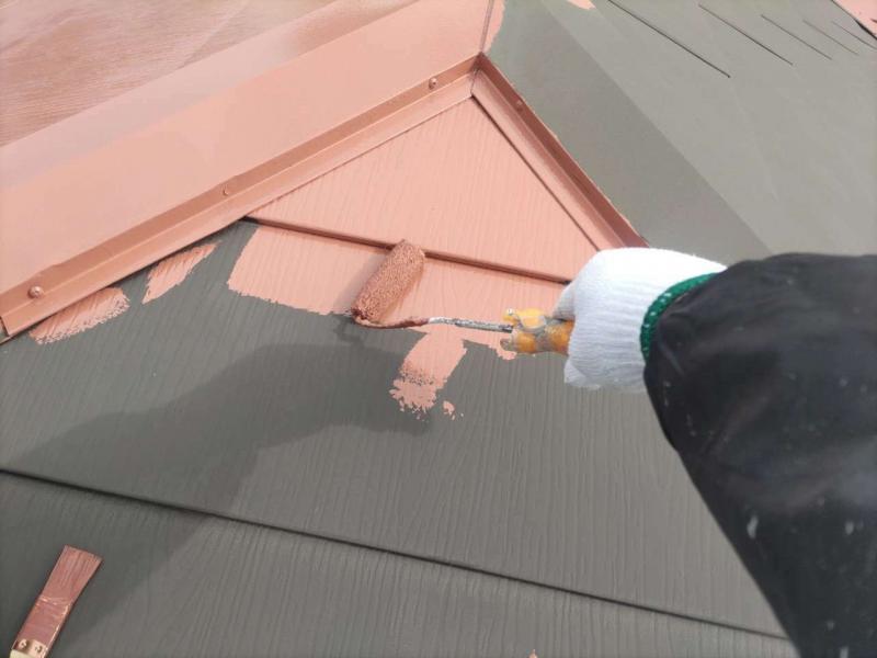 下塗り後、中塗り→上塗りの3工程で塗装していきます。今回使用した塗料はガイソールーフガードネオMUKIです。