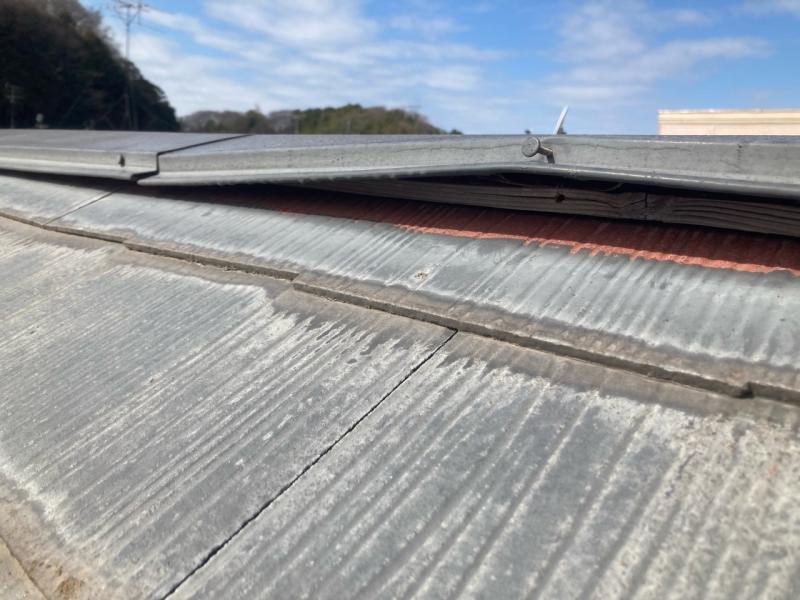 棟板金が浮いていました。雨水の浸入や破損につながるリスクがあります。