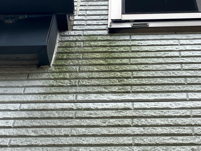 防水機能の低下により外壁に苔が発生していました。水はけが悪くなり、常に湿っている状態ですとこの様に苔が生えたりカビの発生などで外壁を痛めることになってしまいます。