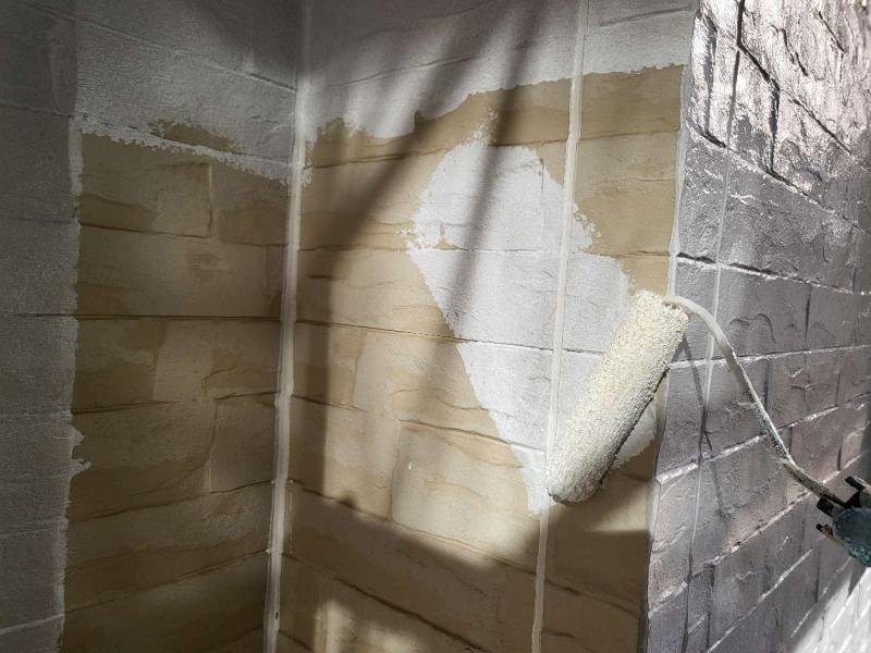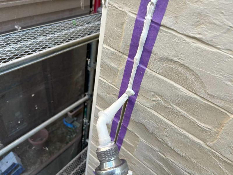 既存のコーキングを撤去し、養生をしていきます。コーキングとの密着が良くなるようにプライマーを塗布し、コーキングを充填していきます。