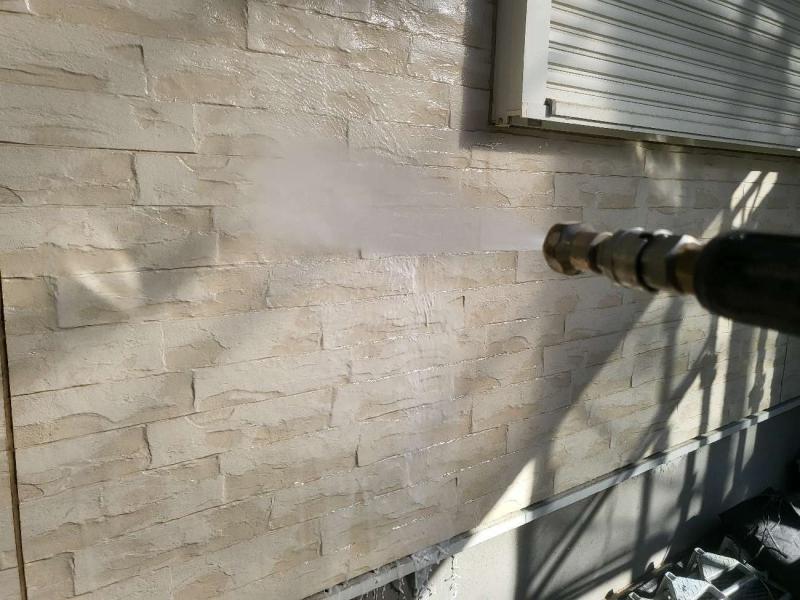 塗装前にガイソーパワークリーナーで苔やカビを根こそぎ洗い落として行きます。