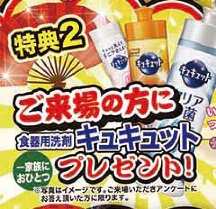 ご来場いただきアンケートいただいたお客様に食器用洗剤キュキュットをプレゼント!