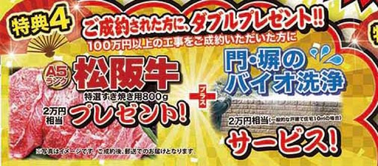 ◆特典4 ご成約特典 松坂牛+門塀のバイオ洗浄ダブルプレゼント◆