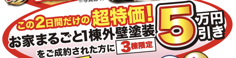 お家一棟まるごと外壁塗装をご成約の方3棟限定で