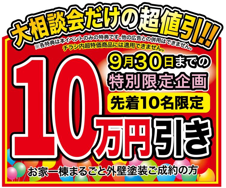 お家一棟まるごと外壁塗装をご成約の方10名様限定で